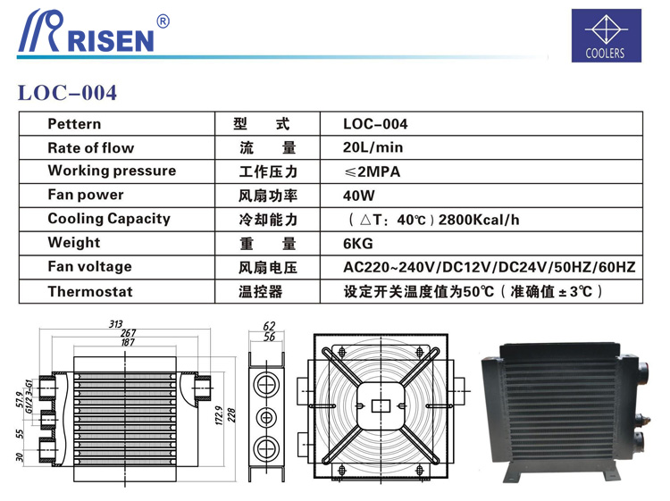 RISEN 日森 板式 風(fēng)冷卻器 兩側(cè)油口 風(fēng)冷 LOC-004 20L
