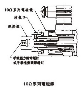 ●為使控制保持穩(wěn)定,要把空氣全部排掉并用油充滿電磁閥的鐵芯。為了排掉空氣要逐漸松開(kāi)比例閥端部的排氣口。排氣口的位置可以改變,以使空氣可以容易地從閥中排出。要改變排氣口位置時(shí),可旋轉(zhuǎn)電磁鐵連接器,直至排氣口到達(dá)所要求的位置(見(jiàn)右圖)。