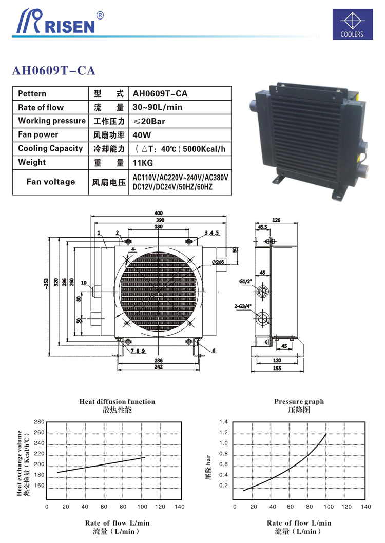 RISEN 日森 板式 風(fēng)冷卻器 風(fēng)冷 AH0609T-CA 30-90L