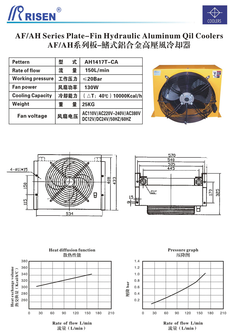 RISEN 日森 板式 風冷卻器 風冷 AH1417TT-CA 150L
