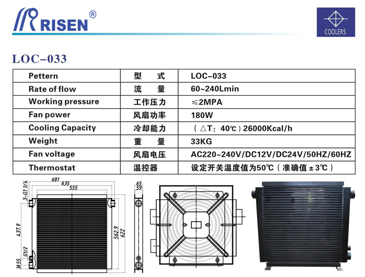 RISEN日森板式風冷卻器 兩側(cè)油口 帶電機 風冷 LOC2-033