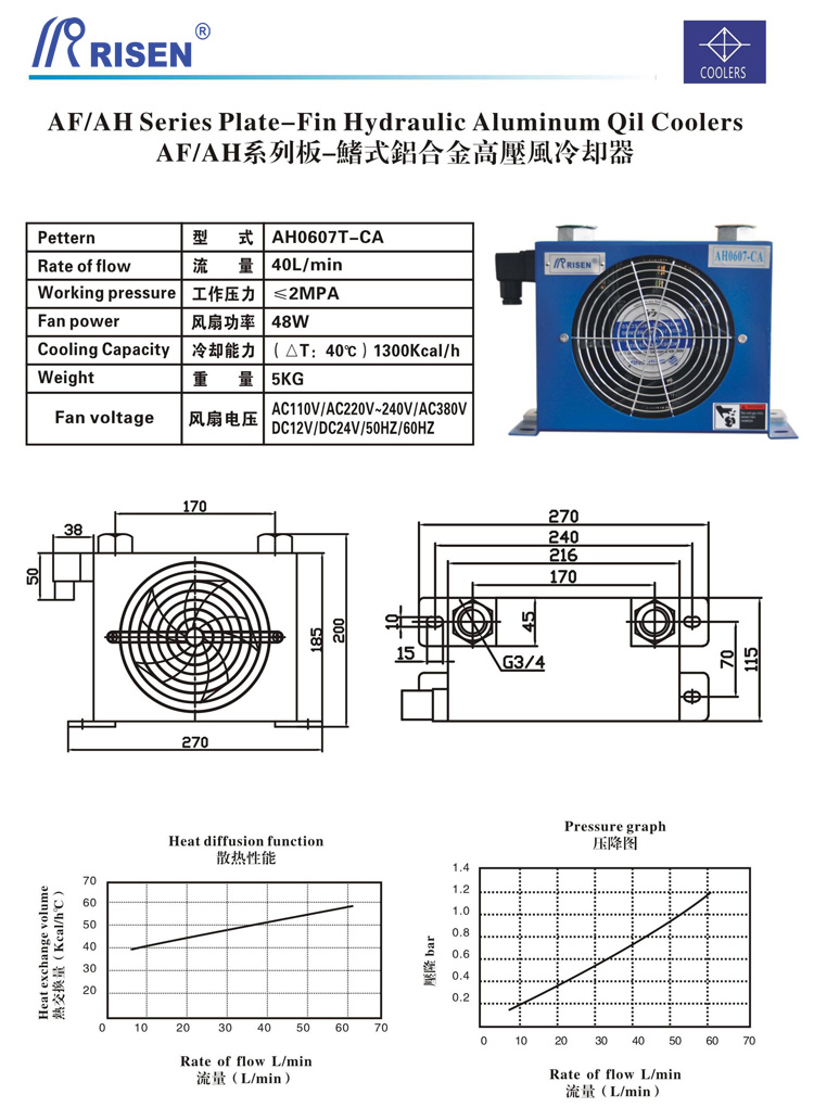 RISEN 日森 板式 風冷卻器 風冷 AH0607T-CA 40L