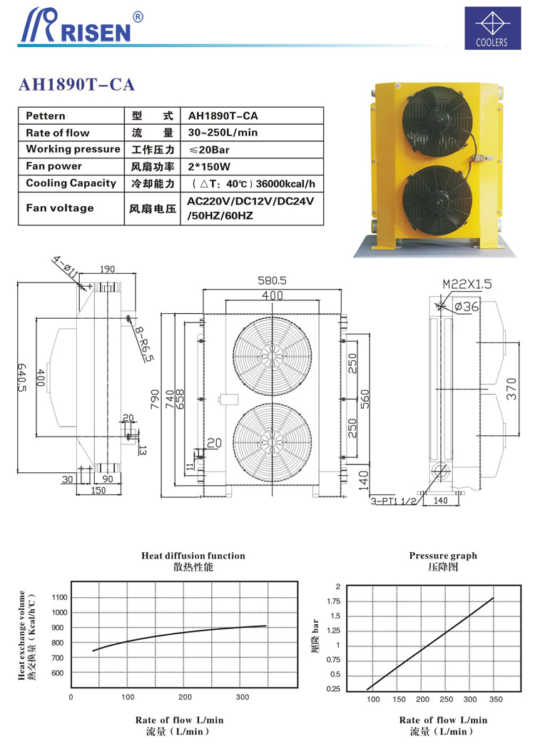 RISEN 日森 板式 風(fēng)冷卻器 雙風(fēng)扇 風(fēng)冷 AH1890TT-CA