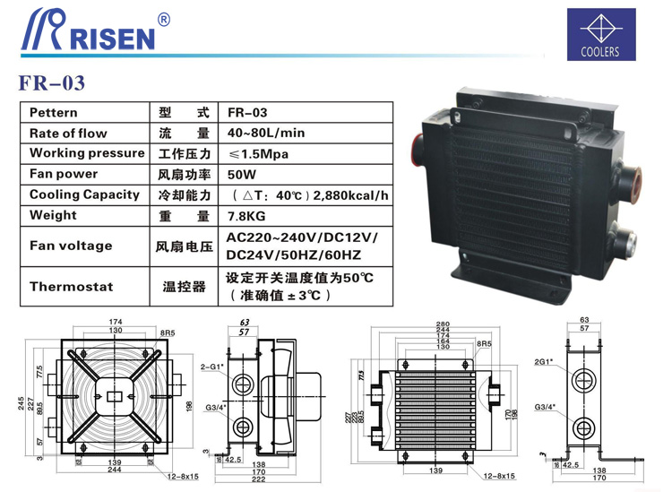 RISEN日森 新型 板式風冷卻器 風冷 FR-03